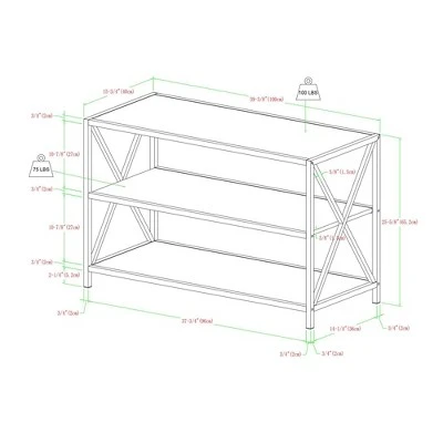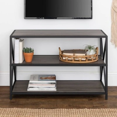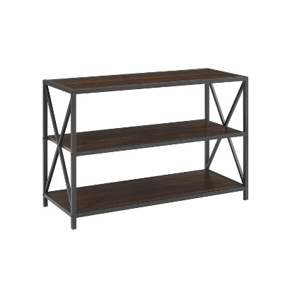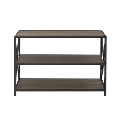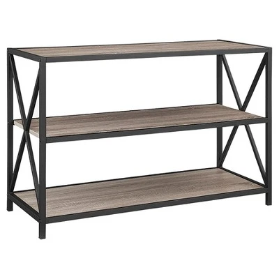 Showcase your books, magazines, media and more with the Frame Metal and Wood Media Bookshelf from Saracina Home. The combination of faux wood and metal creates texture and personality that will still complement any style of decor. Consider this three-shelf console table with storage to organize cluttered living and family areas.