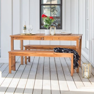 3pc Acacia Wood Simple Patio Dining Set – Saracina Home