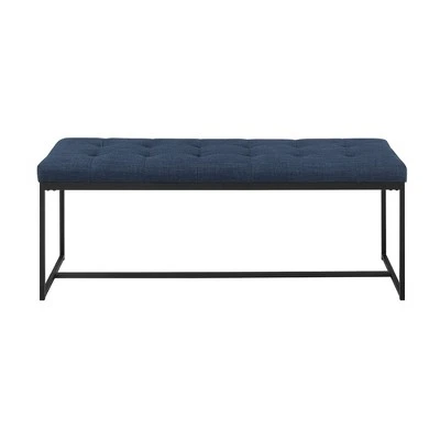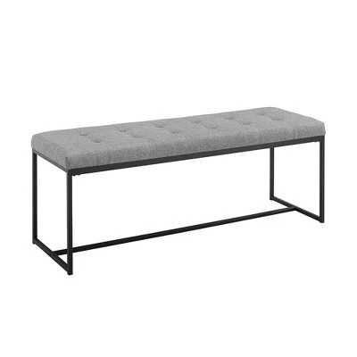 Whether you ‘re looking to add some elegance at the foot of your bed or the head of your entryway, this upholstered bench from Saracina Home has got you covered from top to bottom. It features a tufted linen seat that comfortably accommodates two people. This mixed material bench possesses simple and modern metal legs in a boxy minimalist frame that complements a wide range or room styles. Feel fabulous when you offer your guests a seat on this simple and stylish bench.