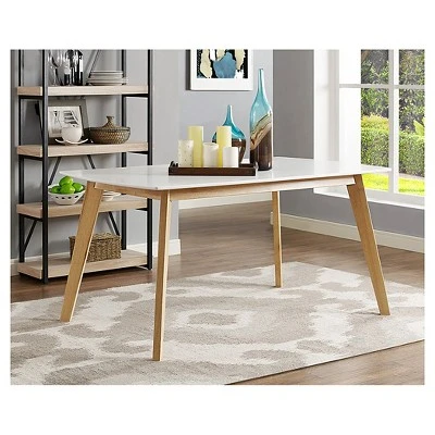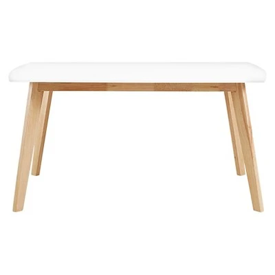 Bring retro flair into your kitchen or dining area with this stunning Retro Modern Dining Table. This stylish table also works great as a desk while working or attending school from home. The beautifully painted white finish is accentuated by natural solid wood legs, making this dining set the perfect addition in your home. The neutral color palette makes this table an easy fit with your home décor while the unique design adds a vintage vibe.