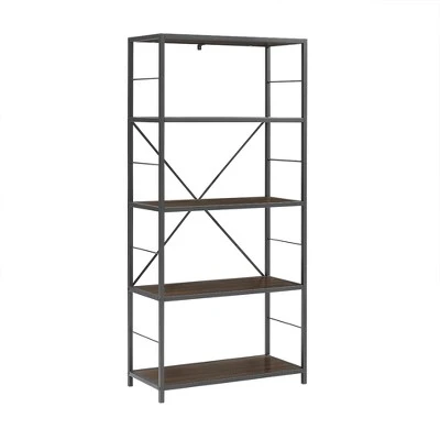 Showcase your best books, marvelous magazines, and dazzling décor with Saracina Home’s rustic industrial X-back bookcase. Use the five shelves anyway you like! Stage the bookshelf in your home office, bedroom, living room, or even the kitchen. Fill the open shelves with house plants, office supplies, or media components. Turn a wall into a library or make a home for your favorite pottery vases. You’ll wonder how you ever went without such a chic bookshelf.