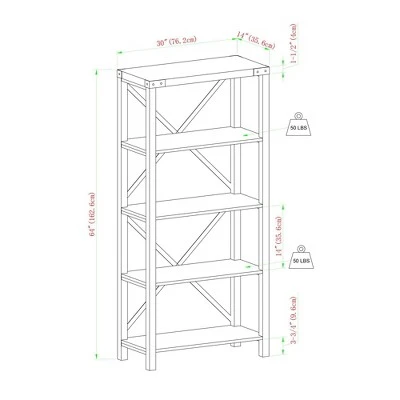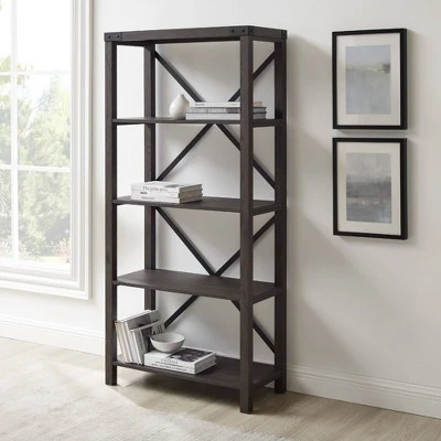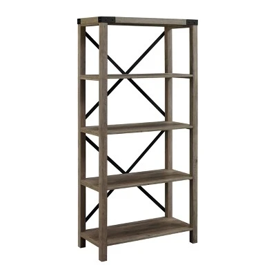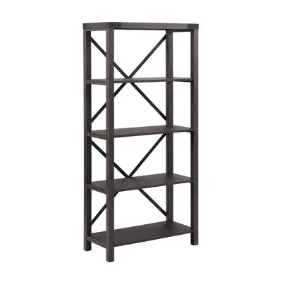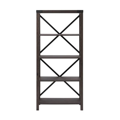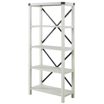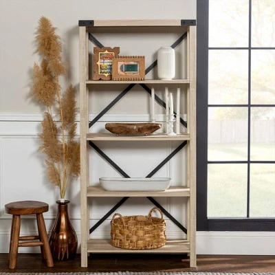 Elevate the look of any room in your home with this 4-shelf wood bookcase from Saracina Home. With a farmhouse aesthetic made of high-grade MDF, laminate in a wood grain finish and metal accents on the top corners and x-shaped back details. This bookshelf provides open storage space to your living space, whether in your entryway, hallway, bedroom, living room, or kitchen. Display family photos, your book collection, media, décor, plants, and more on the four spacious shelves. You’ll love having this stylish bookcase in your home to showcase your most prized possessions.