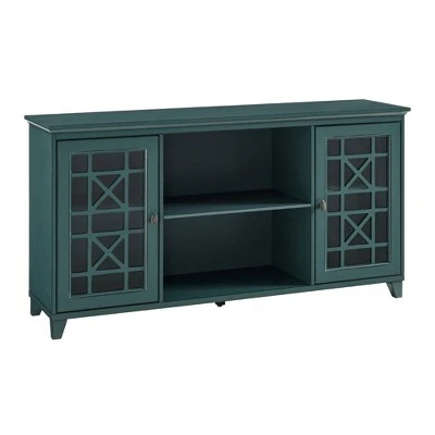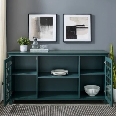 Bayland Transitional Double Fretwork Door Sideboard Antique Dark Teal – Saracina Home
