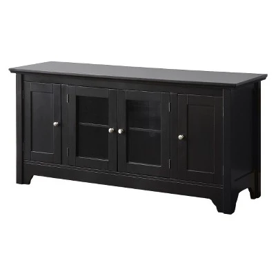 Built to support TVs up to 55 inches, this wood media console is the perfect solution for your home entertainment. Features four media cabinets with adjustable shelving and a built in cable management system to fit your components. Crafted from high-grade MDF with wood veneer finish to fit your home decor.
