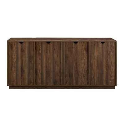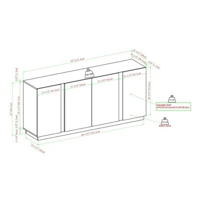 Read between the lines to discover the 70″ 4 Door Contemporary Storage Sideboard Storage by Saracina Home. Four cabinet doors are punctuated by bold, vertical metal stripes that confidently assert a modern air to your living room. Beveled door edges make for discreet finger pulls that maintain the console’s sleek façade. Invite games, bar accessories, or crafting supplies to sit on the four adjustable shelves within the cabinets so your storage console stays looking neat inside and out. And thanks to the console’s cord management ports, you can even adapt the piece to be a bold TV stand for screens up to 80 inches.