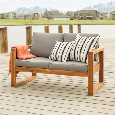 Galia Square Leg Acacia Wood Patio Loveseat With Cushions - Brown - Saracina Home -Saracina Home Shop GUEST d76b97fd f67e 4828 8e8d f8dbdf8052af