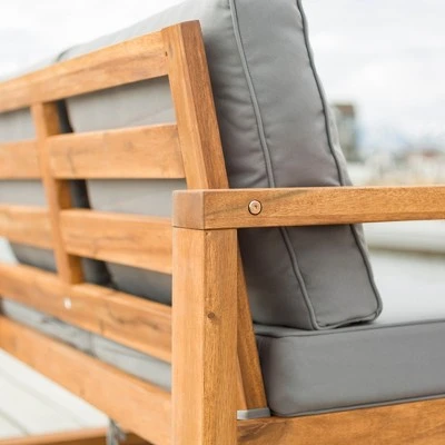 Galia Square Leg Acacia Wood Patio Loveseat With Cushions - Brown - Saracina Home -Saracina Home Shop GUEST 34c230b8 c4f3 4008 8b19 624652108741