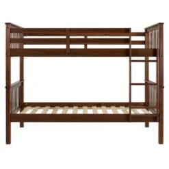 Twin Over Twin Transitional Cottage Solid Pine Bunk Bed Walnut – Saracina Home