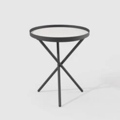 Modern Minimalist Intersecting Tripod Leg Side Table Black/Faux White Marble – Saracina Home