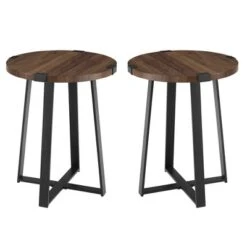 Set Of 2 Wrightson Urban Industrial Wrap Leg Round Side Tables Dark Walnut – Saracina Home
