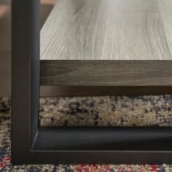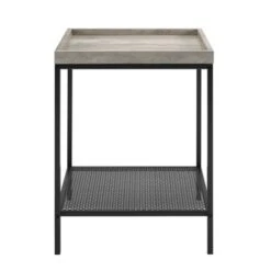 Rosalyn Urban Industrial Glam Square Tray Side Table With Metal Mesh Shelf Gray Wash – Saracina Home