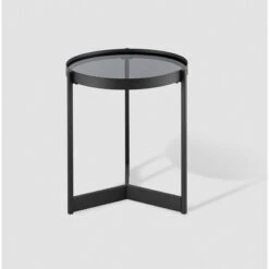 Modern Minimalist Tray Top Round Glass Side Table Black – Saracina Home