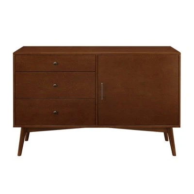 Make-over a living room or home office with Saracina Home’s Angelo Mid-century TV Console. Three drawers, one cabinet, an MDF composite frame, durable wood veneer, and chic metal accents blend into a durable, yet stylish unit that offers endless storage possibilities. Closed storage offers you tidy privacy, as well as a streamlined, clean silhouette. Place this charming TV stand in a living room, home office, kitchen, or however you like! It works well as a credenza or a sideboard buffet.