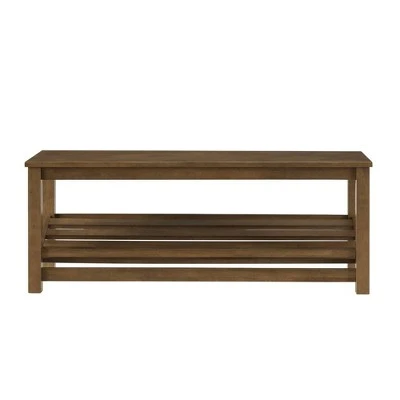 Get ready to head out the door with Saracina Home’s Modern Farmhouse Solid wood Shoe Storage Entry Bench. The angled, slatted lower shelf provides you with easy access to the shoes you wear most, while a slim horizontal bar spanning between the front legs prevents them from sliding off. The solid rubberwood build steadily supports you as you tie, buckle, or zip up your favorite footwear. Use this versatile bench to organize the bustle of an entryway or provide a little extra open storage at the foot of your bed.