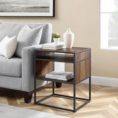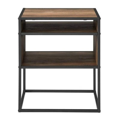 Delicately crafted of mixed materials for a unique look, the 20-inch open-shelf side table is an excellent addition to your home. With a truly versatile design, this table can be styled as a nightstand in a bedroom or as a side table to accent your living space. Intentionally constructed to allow for accessible storage with an open-shelf concept. This accent table mixes a mid century modern feel with an urban industrial style.