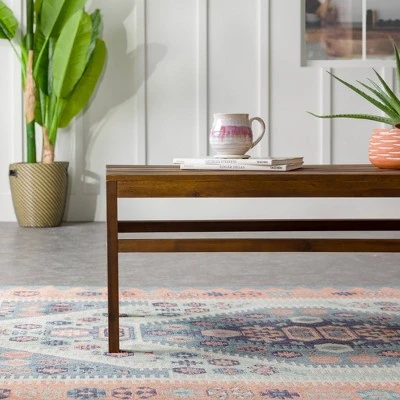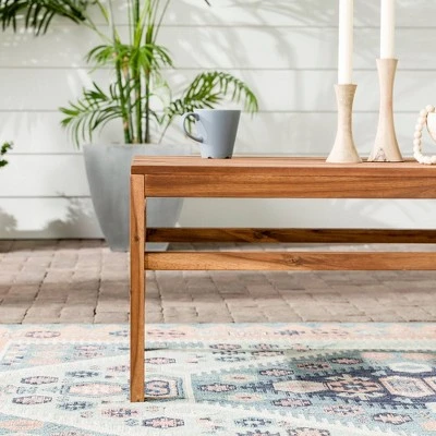 Casual backyard gatherings are off without a hitch thanks to Saracina Home’s Contemporary Acacia Wood Slatted Outdoor Coffee Table. The spacious, rectangular shape provides plenty of room to set down garden party cocktails or play card games under the sun. The slatted tabletop design not only lends your patio a modern refresh, but also prevents dirt and moisture from pooling on the surface. Properly care for your outdoor, solid acacia furniture by applying teak oil every 2-3 months and keeping it out of severe weather conditions.