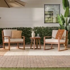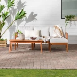 Saracina Home 4pc Mid-Century Modern Slatted Acacia Outdoor Patio Conversation Furniture Set