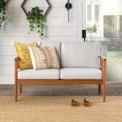 Ravenscroft Modern Boho Acacia Wood Slatted Outdoor Loveseat With Cushion – Saracina Home