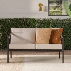 Acacia Wood X-Back Love Seat With Cushions Brown – Saracina Home