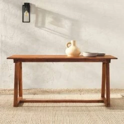 Acacia Wood Patio Simple Rectangle Dining Table – Saracina Home