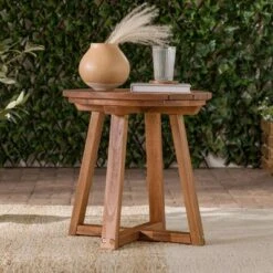 Slatted Chevron Acacia Wood Patio Side Table – Saracina Home