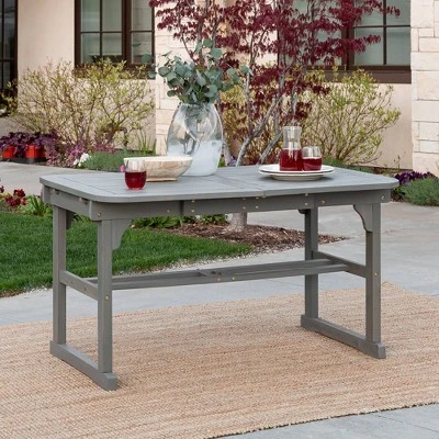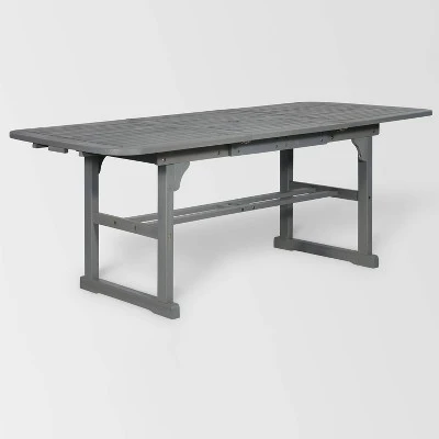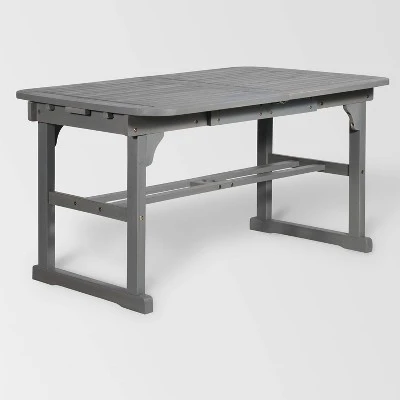Make meal time a magical experience by creating an outdoor living dining set. This slat style solid wood dining table with a butterfly leaf extension from Saracina Home is the perfect cornerstone to build your backyard meals around. Wine and dine in shady coverage when you pull out the table extension since it features a hole where you can easily insert an outdoor umbrella. Properly care for your outdoor acacia furniture by keeping it out of severe weather conditions and applying teak oil every 2-3 months.