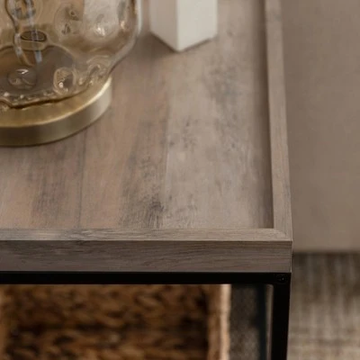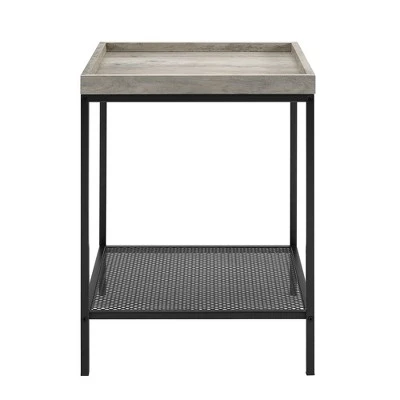 Spice up your life with the Rosalyn Industrial Glam Square Tray Side Table from Saracina Home. The tray-style table top prevents little things from toppling over the edge. This end table works incredibly well as in your vanity corner to keep cosmetics together. This two-tone accent table features a lower metal mesh shelf with a painted gold finish so you can store and display the appropriate decor to achieve your luxury life.