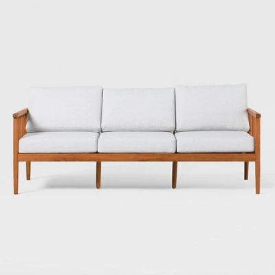 Saracina Home Modern Boho Eucalyptus Outdoor Spindle Sofa With Cushions