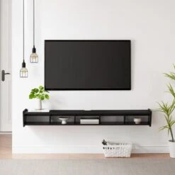 Modern Minimalist Floating TV Stand For TVs Up To 70″ With Open Storage – Saracina Home