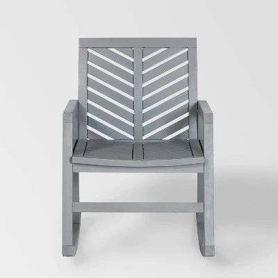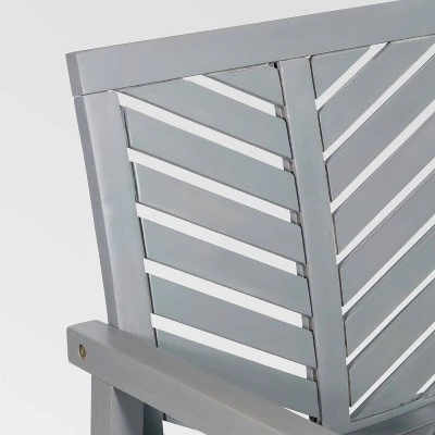Find your rhythm in this chevron patterned rocking chair from Saracina Home. Whether you’re by the pool, on the porch, in your backyard you can sit back and allow yourself to be carried along to the ebb and flow of the summer breeze. Easy to assemble, this patio rocking chair can support up to 250 lbs. Properly care for your outdoor acacia furniture by keeping it out of severe weather conditions and applying teak oil every 2-3 months.